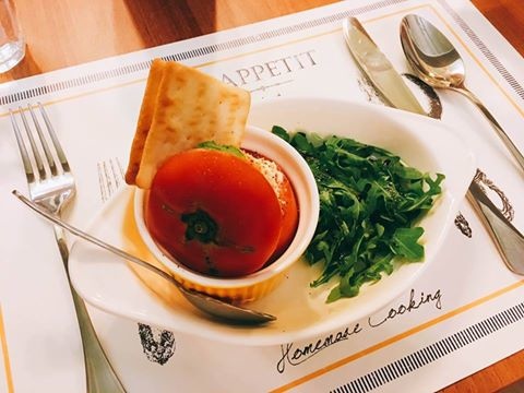 蕃茄起士海鮮盅佐芝麻葉